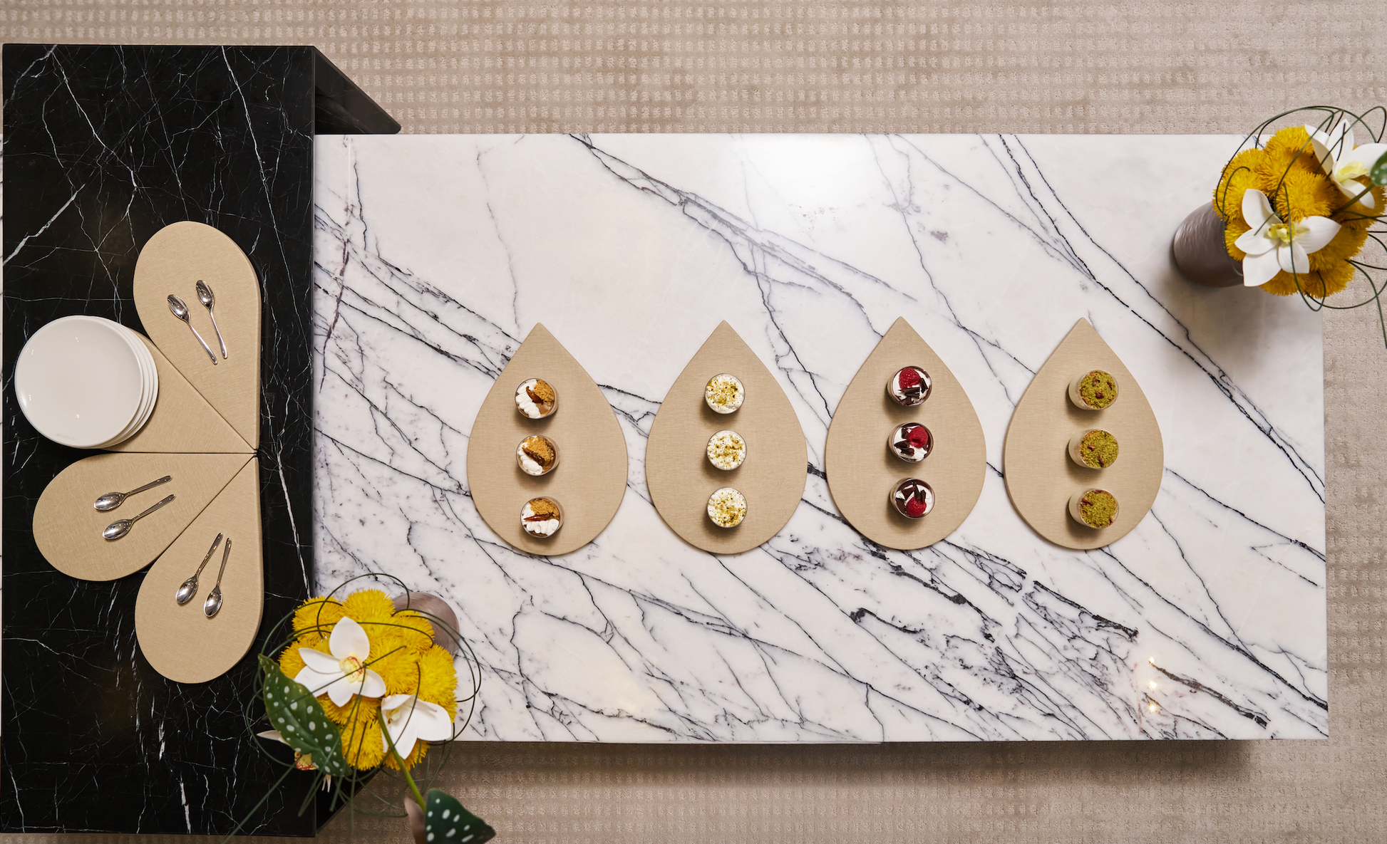 Crafted in a refined teardrop silhouette, this 8-piece tray set offers endless styling possibilities. The set includes 4 small and 4 medium trays in a soft beige finish, allowing you to arrange and layer them in versatile ways. Perfect for serving, organizing, or creating a statement display, this set brings a modern yet timeless touch to any table setting— making it a unique centerpiece for every occasion.